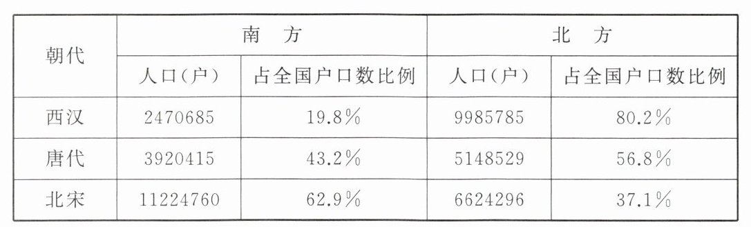 3. 下表为中国古代南北方人口总数及所占比例对照表,据表中信息可知(