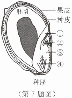 7. 如图是高粱籽粒结构示意图,其中种皮和果皮紧密结合。据图可知(