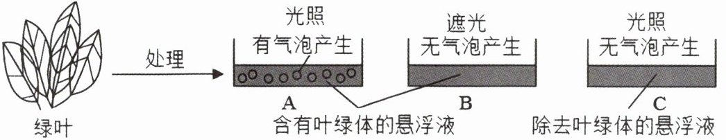 【解析】:A.A中含有叶绿体的悬浮液在光照下进行光合作用,产生的气体是氧气,氧气不会使澄清石灰水变浑浊,二氧化碳才会,A错误;