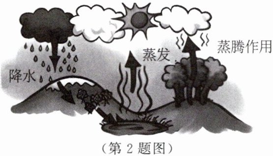 2. 如图是地球水循环示意图,根据示意图分析,叙述错误的是 (