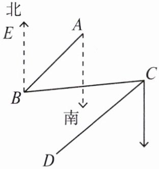18. 如图,$B处在A处的南偏西45^{\circ}$方向,$C处在B处的北偏东80^{\circ}$方向。