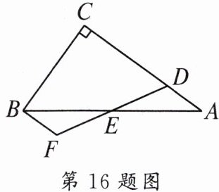 16. 如图,$Rt△ABC$中,$∠C= 90^{\circ }$,E 为 AB 中点,D 为 AC 上一点,$BF// AC$交 DE 的延长线于点 F。$AC= 6,BC= 5$,则四边形 FBCD 周长的最小值是