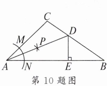 10. 如图,在$△ABC$中,以顶点A为圆心,适当长为半径画弧,分别交AC,AB于点M,N,再分别以点M,N为圆心,大于$\frac {1}{2}MN$的长为半径画弧,两弧交于点P,作射线AP交BC于点D,过点D作$DE⊥AB$于点E。若$DE= 2,AB= $$8,△ABC$的面积为13,则AC的长为(