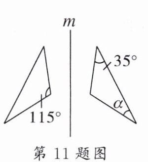 11. 如图,两个三角形关于直线m对称,则$α=$