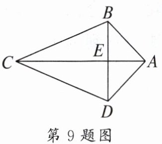 9. 如图,在四边形ABCD中,$△ABC与△ADC$关于对角线AC对称,现有以下结论:①AC平分$∠BAD$;②CA平分$∠BCD$;③$BD⊥AC$;④$BE= DE$。其中正确的是(