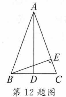 12. 如图,在$△ABC$中,$AB= AC$,AD是BC边上的中线,$BE⊥AC$,垂足为E。若$∠BAD= 20^{\circ }$,则$∠CBE$的度数为