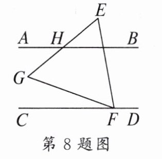 8. 如图,直线$AB// CD$,等边三角形EFG的顶点F在直线CD上,$∠BHE= 40^{\circ },则∠CFG$的度数为(
