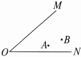 17. 一犯罪嫌疑人正在两交叉公路(OM和ON)间沿到两公路距离相等的一条小路上逃跑,埋伏在A,B两处的两名公安人员想在距A,B相等的距离处同时抓住这一犯罪嫌疑人(如图)。请你帮助公安人员在图中设计出抓捕点,并说明理由。(保留作图痕迹)