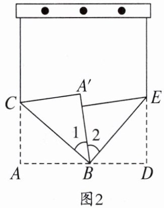 (2)如果又将活页的另一角折过去,使BD边落在$BA'$上,折痕为BE,如图2所示。若$∠1= 30^{\circ }$,求$∠2和∠CBE$的度数;