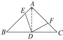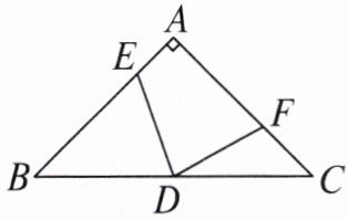 如图,连接 $AD$。因为 $ \triangle ABC$ 为等腰直角三角形,$D$ 为 $BC$ 的中点,所以 $AD = DC$,$AD$ 平分 $ \angle BAC$,$ \angle C = 45^{\circ}$。在 $ \triangle ADE$ 和 $ \triangle CDF$ 中,$\begin{cases}EA = FC, \\ \angle EAD = \angle C = 45^{\circ}, \\ AD = CD, \end{cases}$ 所以 $ \triangle ADE \cong \triangle CDF(SAS)$,所以 $DE = DF$。