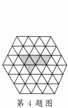 4. 如图,在小正三角形组成的网格中,已有$6$个小正三角形涂黑,还需涂黑$n$个小正三角形,使它们与原来涂黑的小正三角形组成的新图案恰有三条对称轴,则$n$的最小值为(