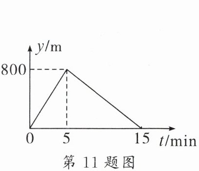 11. 小明从家跑步到学校,到达学校后马上沿原路步行回家,如图所示的是小明离家的路程y(m)与时间t(min)之间的关系图象,则小明回家的速度是每分钟步行____