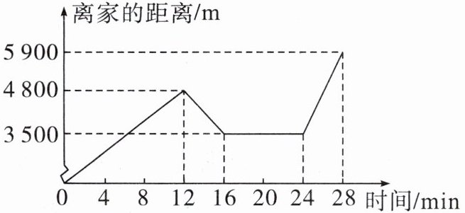 15. 为了体验大学校园文化,小华利用周末骑电动车从家出发去深圳大学,当他骑了一段路时,想起要帮在深大读书的张浩买一本书,于是原路返回到刚经过的新华书店,买到书后继续前往深大,如图所示的是他离家的距离与时间的关系示意图,请根据图中提供的信息回答下列问题: