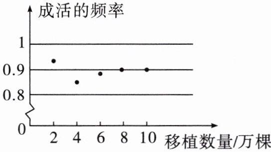 19. 某市林业局积极响应“绿水青山就是金山银山”的号召, 特地考察一种花卉移植的成活率, 对本市这种花卉移植成活的情况进行了调查统计, 并绘制了如图所示的统计图。请你根据统计图提供的信息, 回答下列问题: