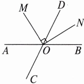 17. 如图,直线 AB,CD 相交于点 O,ON 平分$∠BOD,OM⊥ON$。