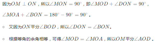 (2)试说明 OM 平分$∠AOD$。