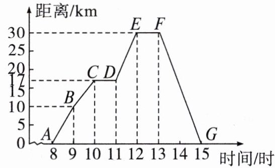 (4)晓杰返回时的平均速度是 $30 ÷ 2 = 15$(km/h)。