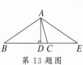 13. 如图,AD 是$△ABC$的高,线段 AE 与线段 AB 关于直线 AD 对称。若$∠B= 35^{\circ },∠CAE= 40^{\circ }$,则$∠BAC= $