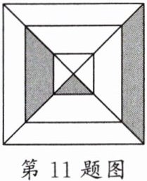 11. 如图是小鹏自己创作的正方形飞镖盘,并在盒内画了两个小正方形,则小鹏在投掷飞镖时,飞镖扎在阴影部分的概率是