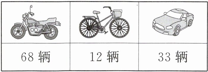 (2)小汽车比摩托车少多少辆?