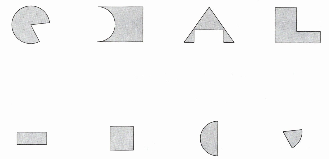 2. 下面的图形分别是从上面哪个图形上剪下来的?连一连。