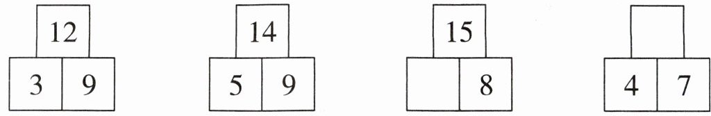 $9+5=14$ $5+9=14$ $14-5=9$ $14-9=5$ $7+4=11$ $4+7=11$ $11-4=7$ $11-7=4$