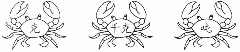 四、小螃蟹往哪儿游?(在螃蟹身上写上正确的单位)