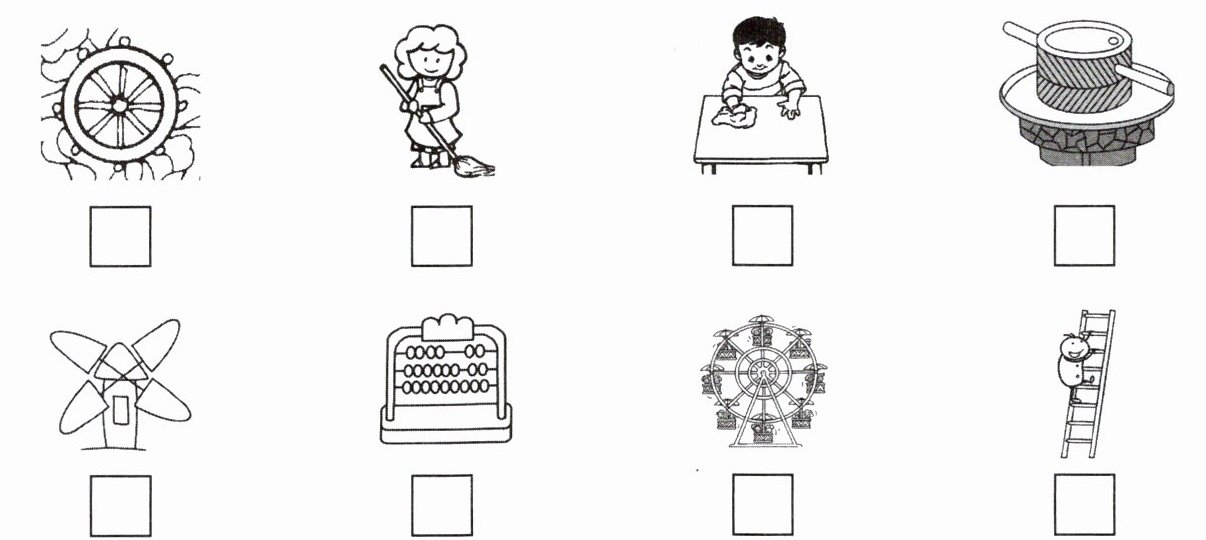 二、观察下面物体的运动,平移的画“△”,旋转的画“○”。