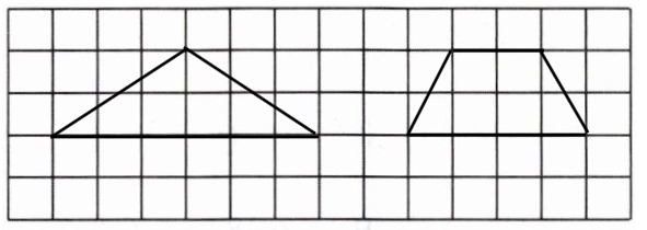 1. 在下面的方格内画出一个等腰钝角三角形和一个等腰梯形。