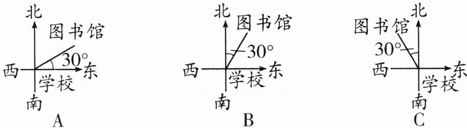 3. 以学校为观测点,图书馆在东偏北$30^{\circ }$的方向上,下图中正确的是(