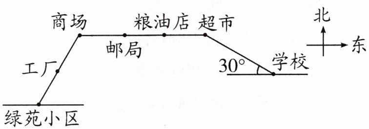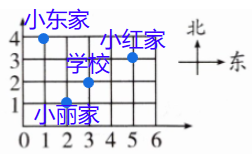 (5)以学校为观测点量一量,小红家在( )方向上,小东家在( )方向上,小丽家在( )方向上。