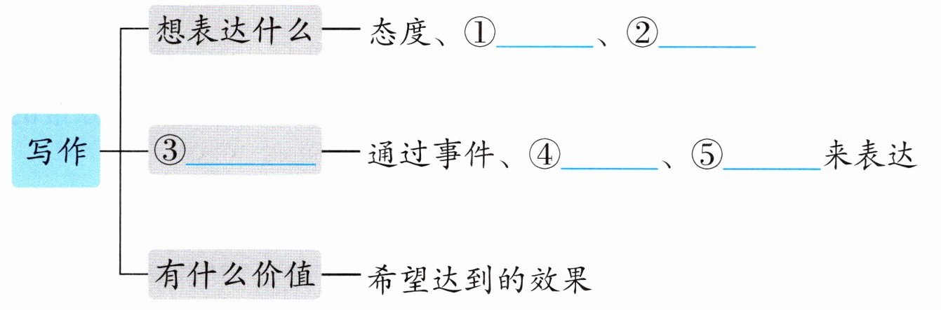 (1)写作前我们需要作一些思考,请完成下面这张思维导图。