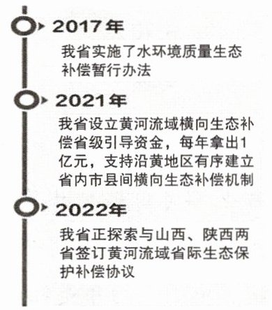 1. 河南乡村振兴开辟绿色路径。 2. 合适。理由:第一幅图摘编自 2022 年 7 月 12 日《河南日报》,报道了 2017 年、2021 年和 2022 年黄河水治理的举措,突出了“绿色河南,绿色中国”的主题。第二幅图摘编自 2022 年 7 月 10 日《人民日报》,报道了我国 2022 年上半年地级及以上城市空气质量状况明显提高的情况,这是我国各地都坚持绿色发展共同取得的成效,揭示了“绿色河南”与“绿色中国”的密切关系。 3.【示例】为了保护生态,我们要坚守“绿色生活”理念,为改变一部分人的陈旧观念做好宣传,为社会可持续发展贡献自己的一份力量。