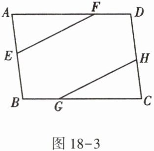 5. 如图18-3,在$□ ABCD$中,$E$,$G$,$H$,$F分别是AB$,$BC$,$CD$,$DA$上的点,且$BE = DH$,$AF = CG$. 求证:$EF = HG$.