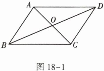 2. 如图18-1,$□ ABCD的对角线AC与BD相交于点O$,且$AC + BD = 16$,$CD = 6$,则$\triangle ABO$的周长是(