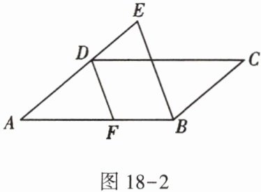 4. 如图18-2,在$□ ABCD$中,$DF平分∠ADC$,交$AB于点F$,$BE// DF$,交$AD的延长线于点E$. 若$∠A = 40^{\circ}$,求$∠ABE$的度数.