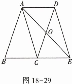 7. 如图18-29,在$□ ABCD$中,$O是CD$的中点,连接$AO$并延长,交$BC的延长线于点E$.
