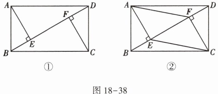 (2)如图18-38②,当$∠ADB= 30^{\circ }$时,连接$AF,CE$,在不添加任何辅助线的情况下,请直接写出图18-38②中四个三角形,使写出的每个三角形的面积都等于矩形$ABCD面积的\frac {1}{8}$.