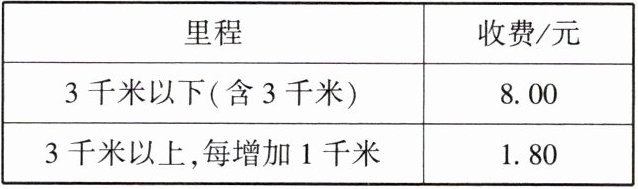 (1) 写出出租车行驶的里程数$x≥3$(单位:千米)与费用$y$(单位:元)之间的关系式.