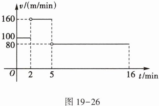12. 小明从家出发,沿一条直道跑步,经过一段时间原路返回,刚好在第$16\mathrm{m}\mathrm{i}\mathrm{n}$回到家中. 设小明出发第$t\mathrm{m}\mathrm{i}\mathrm{n}时的速度为v\mathrm{m}/\mathrm{m}\mathrm{i}\mathrm{n}$,离家的距离为$s\mathrm{m}$,$v与t$之间的函数关系如图19-26所示(图中的空心圈表示不包含这一点).