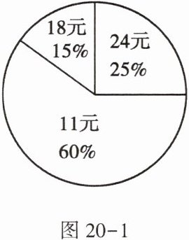 4. 某水果店销售单价分别为11元、18元、24元的三种水果,根据水果店一个月这三种水果销售量的统计图(如图20-1)可计算出该店当月销售水果的平均价格是______元.