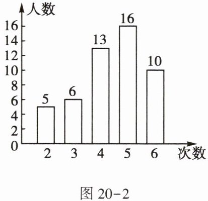 5. 某市开展了“寻找雷锋足迹”的活动,某中学为了了解八年级800名学生在“学雷锋活动月”中做好事的情况,随机调查了八年级50名学生在一个月内做好事的次数,并将所得数据绘制成统计图(如图20-2),请根据图中提供的信息解答下列问题: