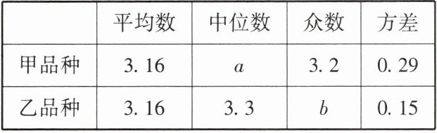 (3)答案不唯一,合理即可,如:因为甲品种的方差为0.29,乙品种的方差为0.15,所以乙品种更好,产量稳定.