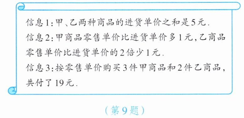 9. 某商店经销甲、乙两种商品。请根据如图所示信息,回答下列问题: