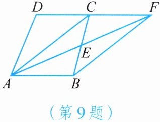 9. 如图,在四边形ABCD中,$AB// CD$,E是BC的中点,直线AE交DC的延长线于点F.试判断四边形ABFC的形状,并证明你的结论.