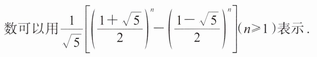 【生活情境】斐波那契(约1170—1250)是意大利数学家,他研究的“斐波那契数列”(按照一定顺序排列着的一列数称为数列)非常奇妙.后来,人们在研究它的过程中发现了许多意想不到的结果.在实际生活中,许多植物(如梅花、飞燕草、万寿菊等)的花瓣数恰是斐波那契数列中的数.斐波那契数列还有很多有趣的性质,在实际生活中也有广泛的应用.斐波那契数列中的第n个数可以用$\frac {1}{\sqrt {5}}[(\frac {1+\sqrt {5}}{2})^{n}-(\frac {1-\sqrt {5}}{2})^{n}](n≥1)$表示.