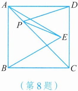 8. 如图,正方形ABCD的面积为12,$\triangle ABE$是等边三角形,点E在正方形ABCD内,在对角线AC上有一点P,使$PD+PE$的和最小,则这个最小值为____.