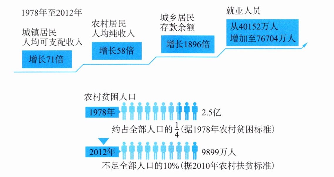 材料一 1979年,在中国最贫困的省份,特别是在安徽,中国开始了“生产责任制”的某些尝试,随后在其他省份推广开来。……20世纪80年代初,粮食、棉花、油料作物、甘蔗、肉类等与人民生活密切相关的产品产量高速增长,中国农业生产的增长率年均高于9%。农村地区的人均收入,也能翻一番。
