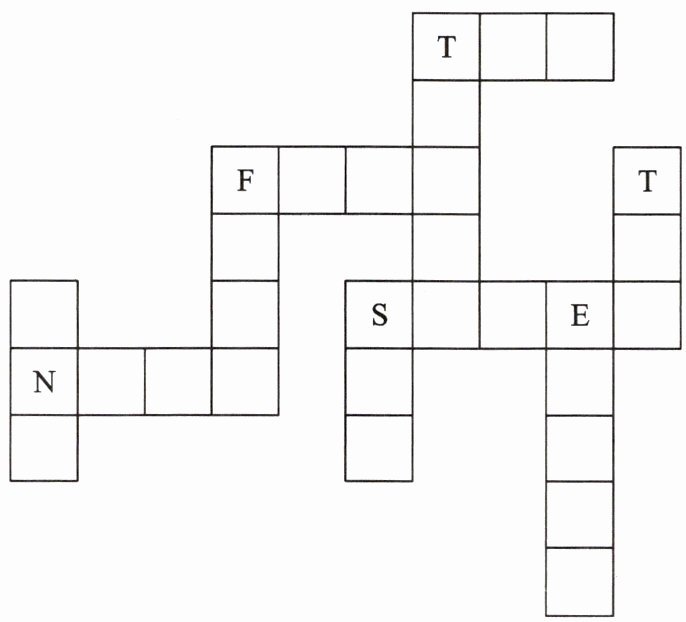 4. (★★★☆☆) 小朋友,你能把 one~ten 这 10 个英语数词分别填入下面的空格中吗? (提示: 部分字母已给出)