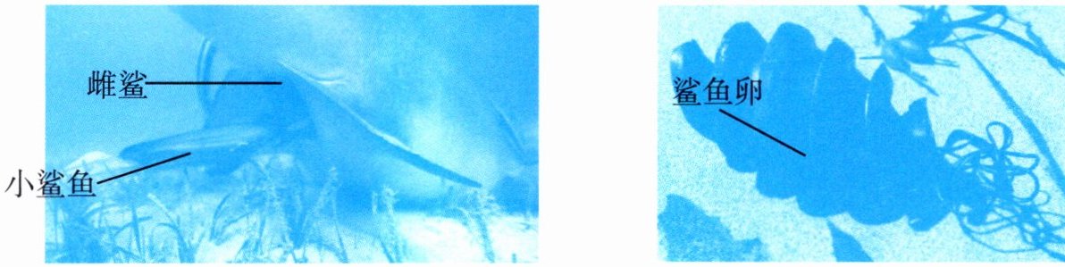 【场景】小禾在网上看到了两张关于鲨鱼繁殖的照片,对鲨鱼的生殖方式产生了浓厚的兴趣。